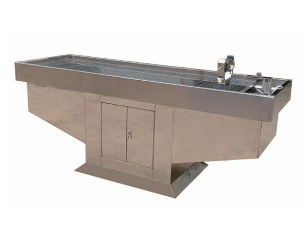 向洗手池单项倾斜,设洗手池排水口,配有洗手池、伸缩水龙头、手提冲洗管及手提冲洗手柄开关,水压可调节
